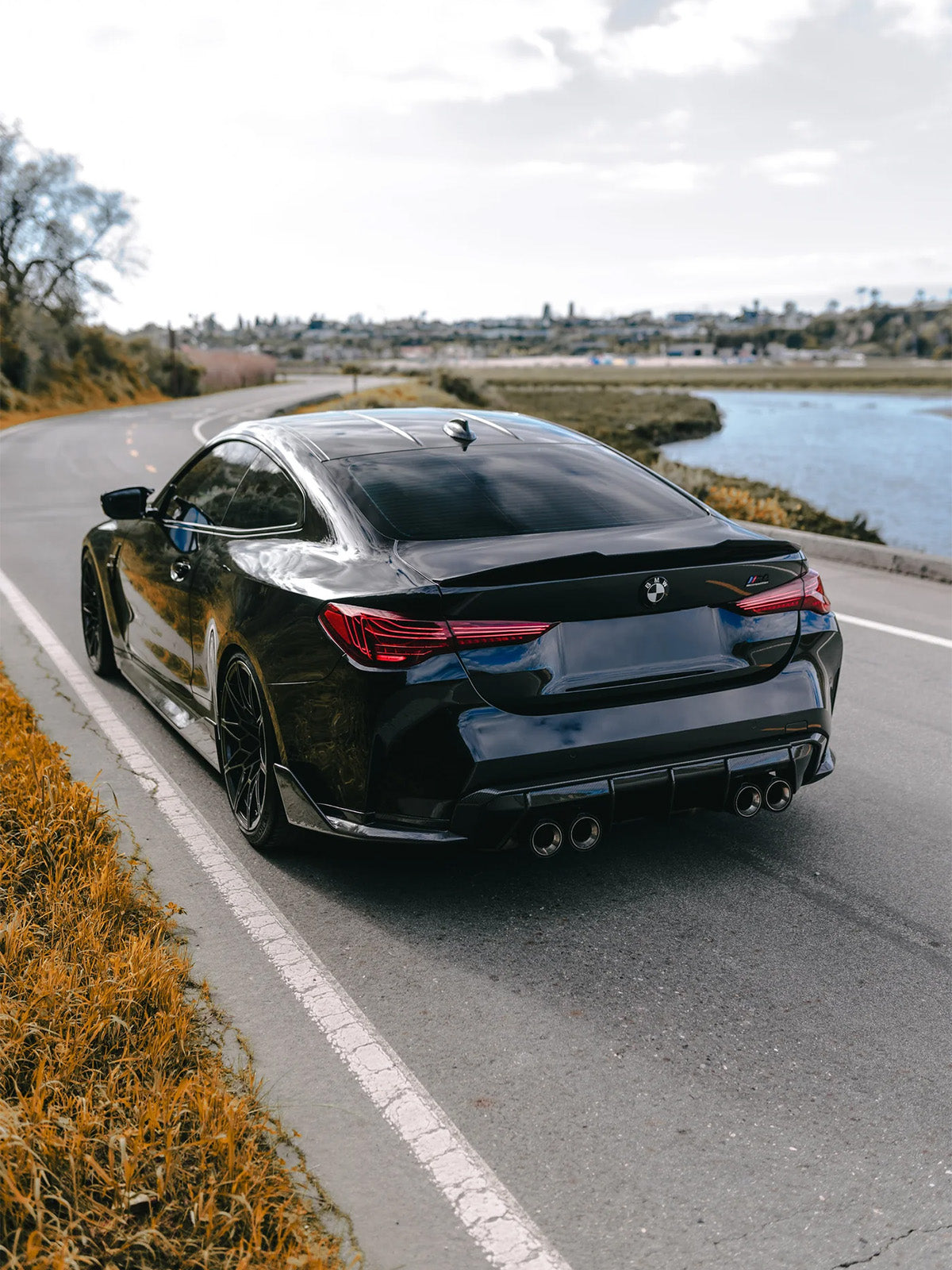This BMW G82 M4 features CSL Style Laser Tail Lights, carbon fibre side skirts, rear winglets, a ducktail spoiler, and a rear diffuser. Tap to shop the exact look and upgrade your build with styling designed for fitment, finish, and presence.
